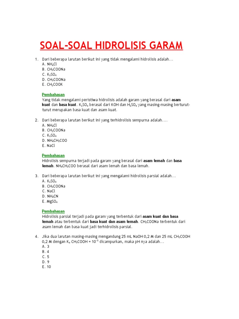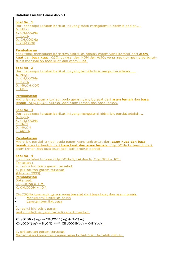 Contoh Soal Dan Pembahasan Hidrolisis Garam - Contoh Soal Terbaru