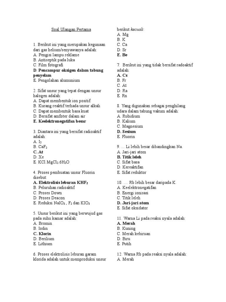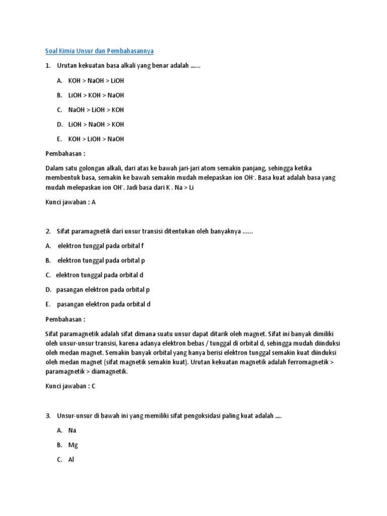 Contoh Soal Kimia Unsur Kelas 12 - Guru Paud
