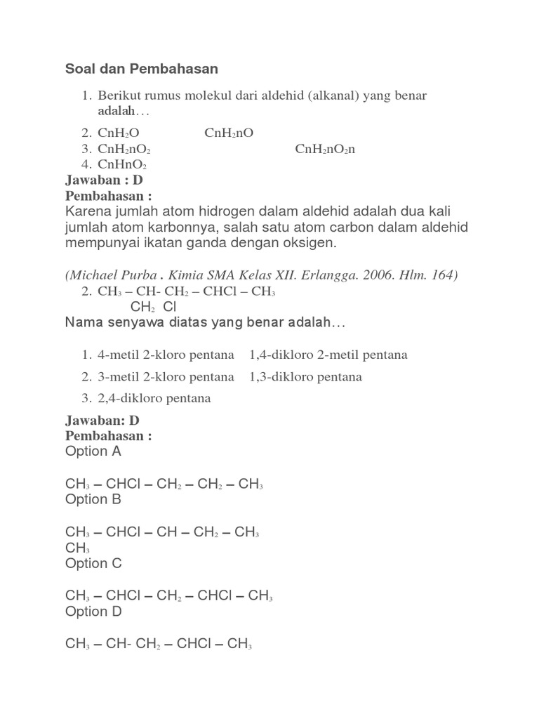 Soal Dan Pembahasan Senyawa Turunan Alkana