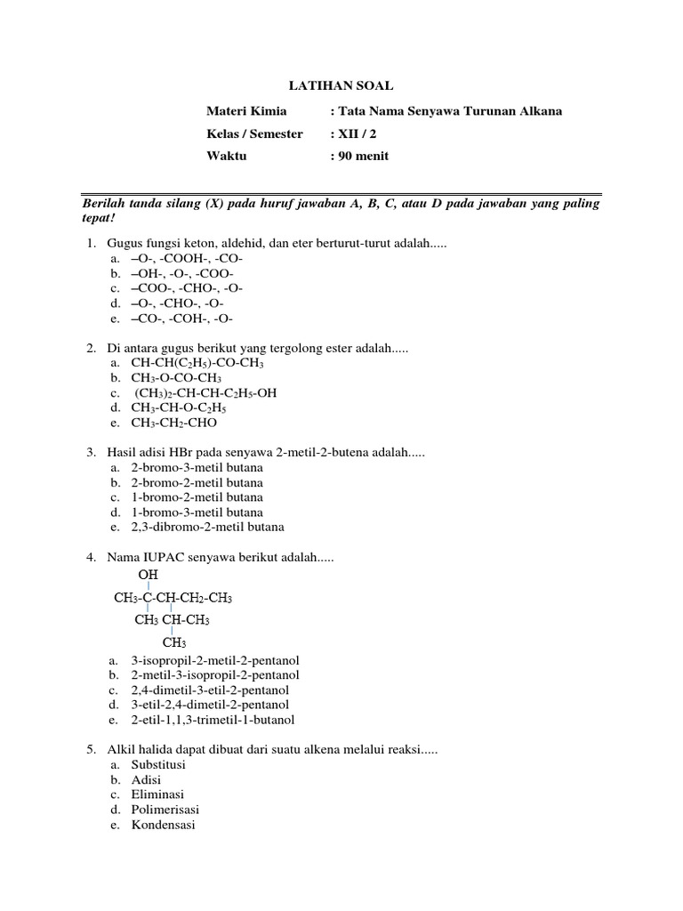 Soal Essay tentang Senyawa Turunan Alkana + Pembahasan - Your …