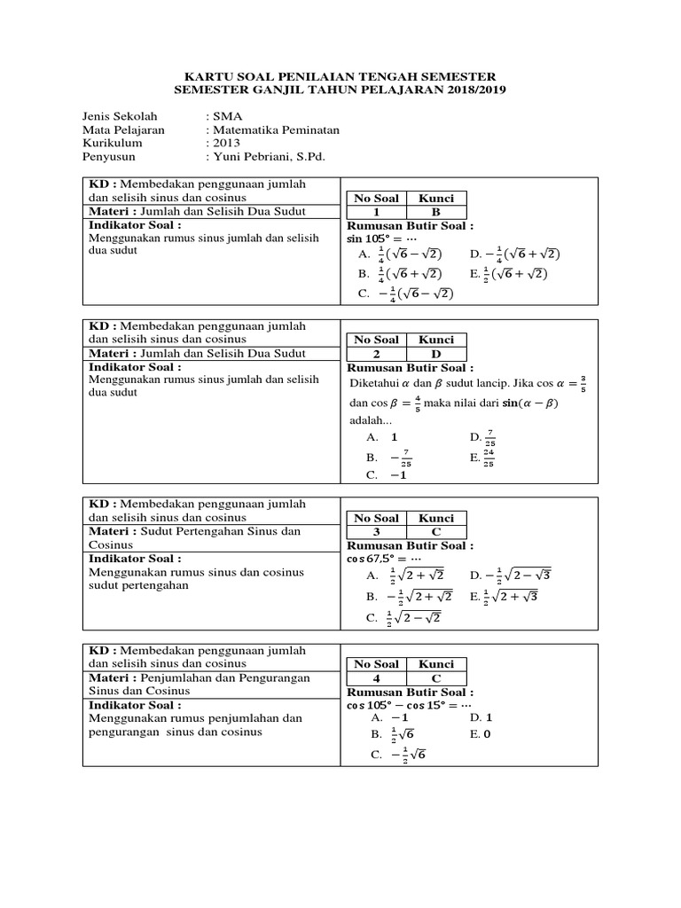 Contoh Soal Dan Jawaban Jumlah Dan Selisih Dua Sudut Doc …
