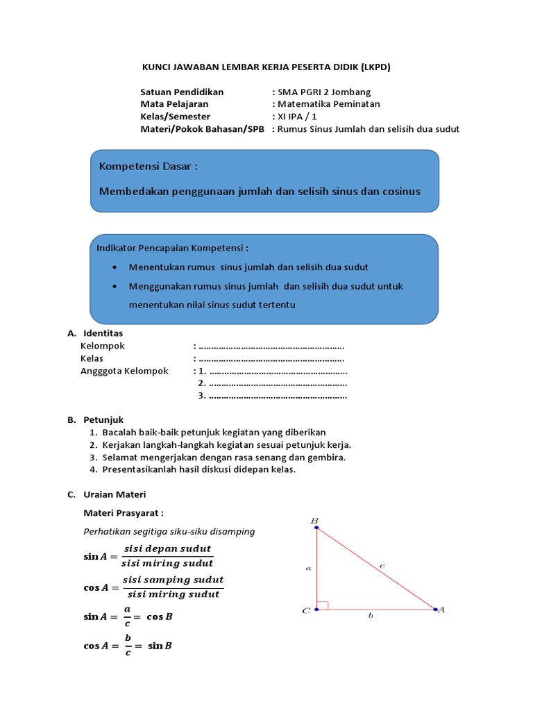 Lkpd kd 3. 14 rumus trigonometri sinus jumlah dan selisih