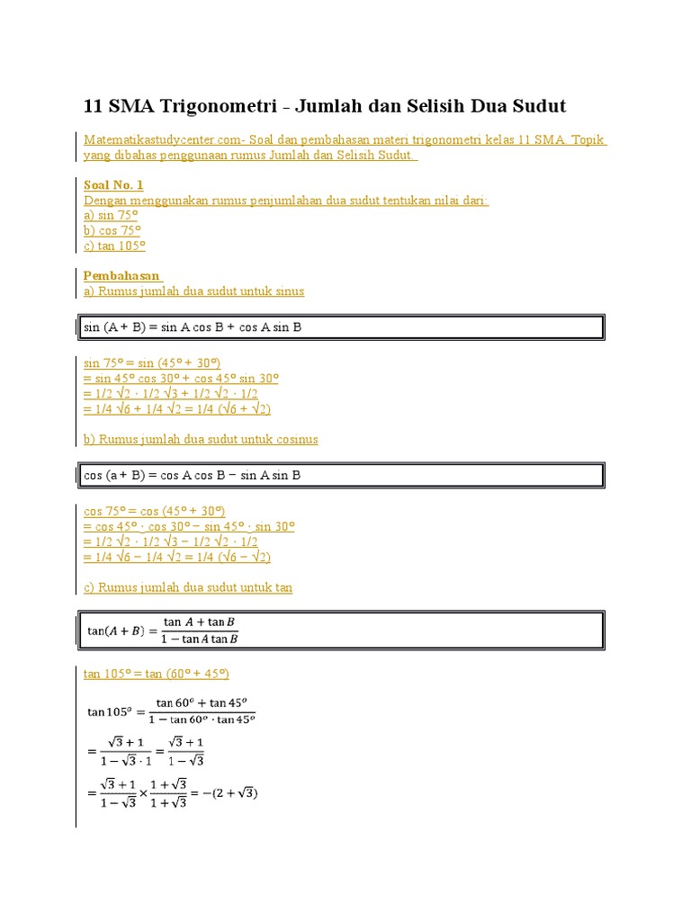 Soal Jumlah Dan Selisih Dua Sudut