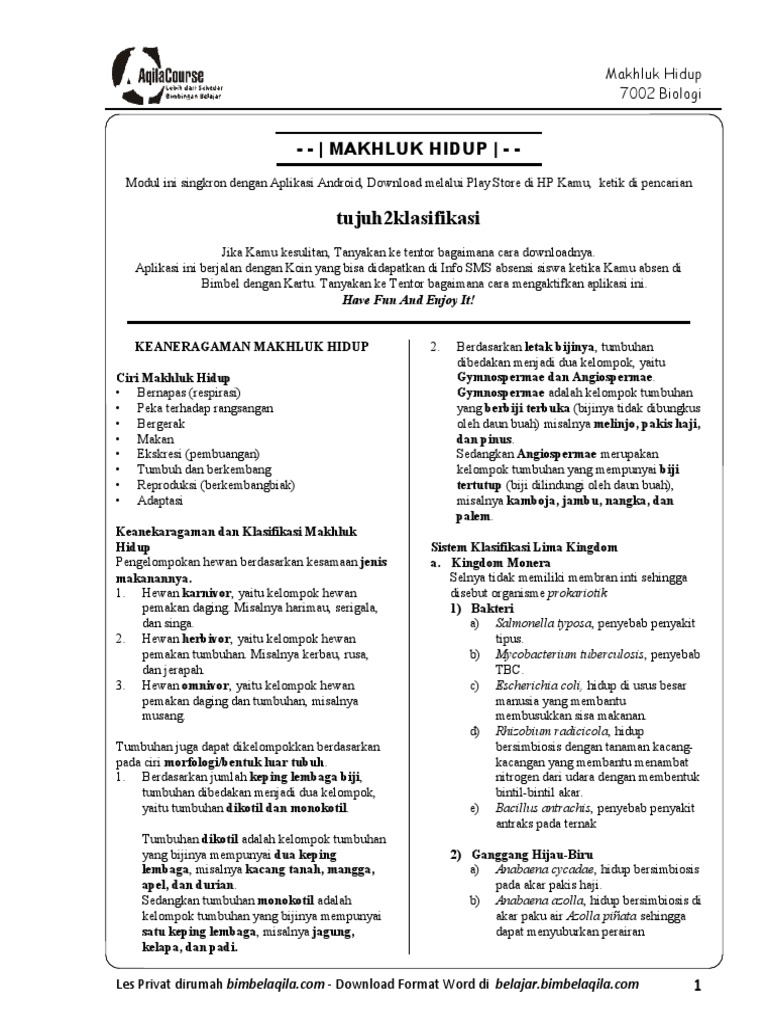 Contoh Soal Klasifikasi Makhluk Hidup Kelas 7 Pdf - Dapatkan Contoh