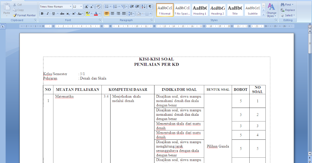 Soal Matematika Kelas 5 KD 3.4 Materi Pokok Perbandingan dan Skala - kurniasepta.com
