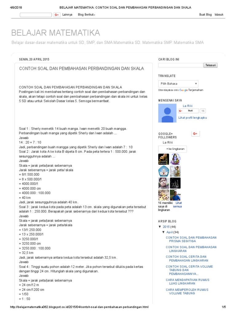 DOC) Contoh soal dan pembahasan jawaban Perbandingan dan Skala | Dini Sanjaya - Academia.edu