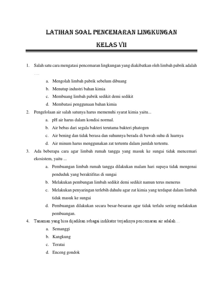 Soal Pencemaran Lingkungan Smp Kelas 7
