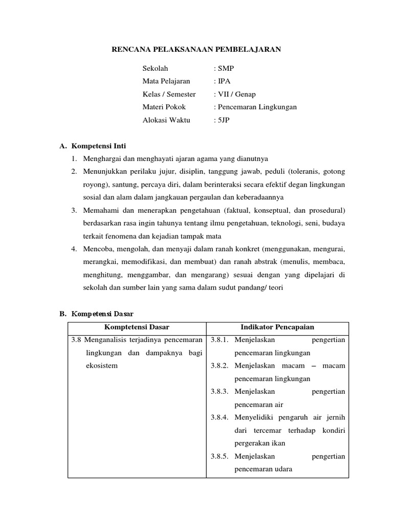 RPP KD 3.8 Pencemaran Lingkungan