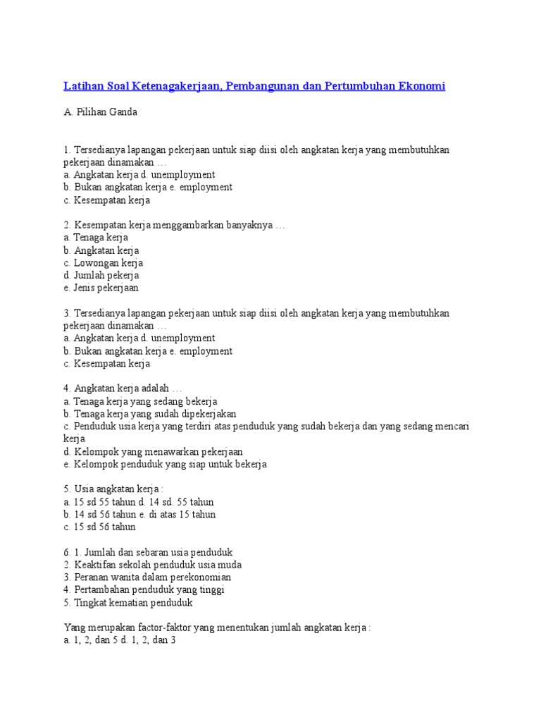 DOC) Soal Ketenagakerjaan, Pertumbuhan&perkembngan ekonomi …
