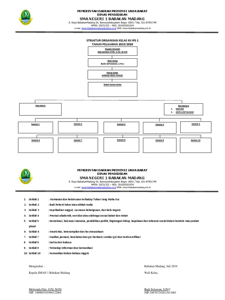Contoh Struktur Organisasi Kelas Di Sd