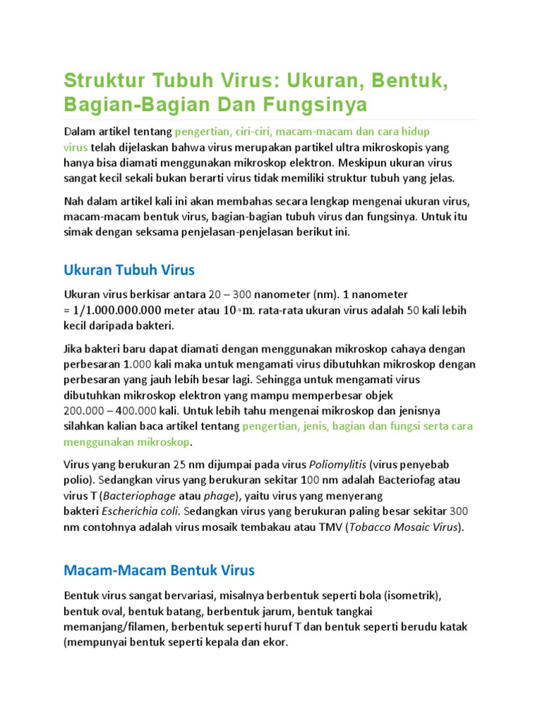 Virus : Ukuran Macam-macam Bentuk Struktur dan Fungsi Gambar