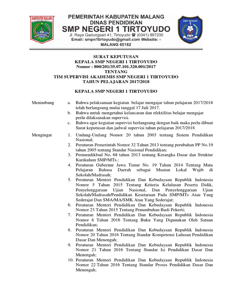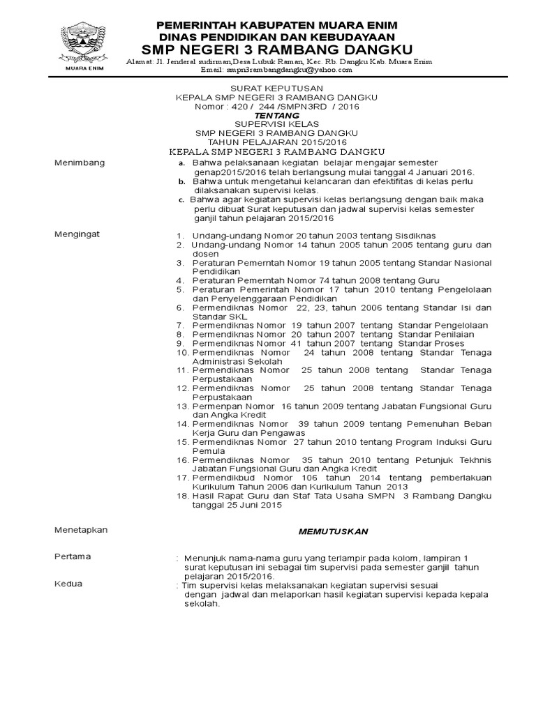 Contoh Sk Supervisi Guru Smp Doc | Sobat Guru