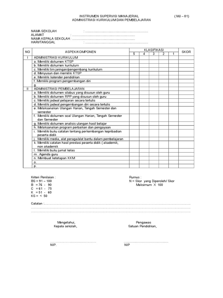 Contoh Format Administrasi Supervisi Kepala Sekolah SD-SMP-SMA-SMK …