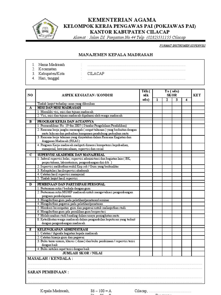 Instrumen Supervisi Kepala Madrasah - [DOC Document]