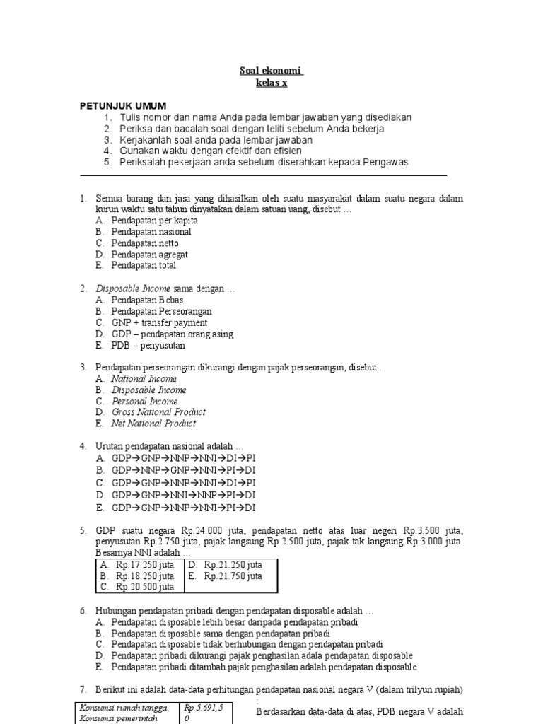 Soal ekonomi tetang Pendapatan Nasional