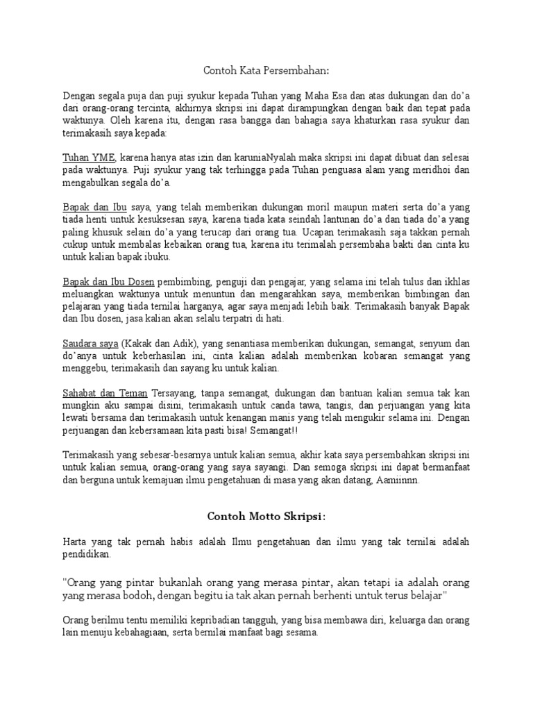 Contoh Kata Halaman Persembahan Skripsi Menyentuh untuk Orang …
