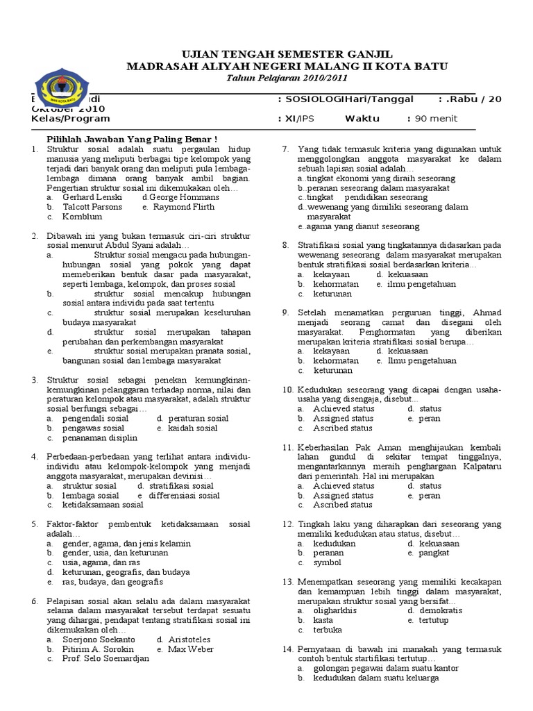 Soal Sosiologi : Struktur Sosial Lengkap - Muttaqin id